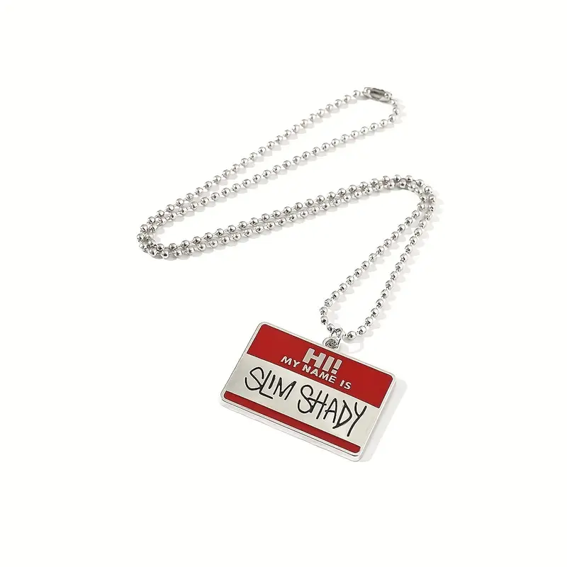 Изрази своята индивидуалност с колие “Slim Shady”, вдъхновено от един от най-емблематичните хип-хоп идоли в света. Дизайнът му напомня на известния бадж с надпис “Hi! My name is Slim Shady” – символ на увереност, бунтарски дух и уникален стил.