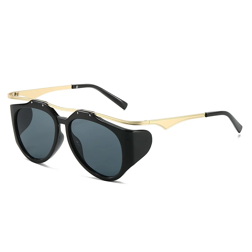 Изрази себе си със смелия дизайн на слънчевите очила Jet Noir. Съчетание от елегантна черна рамка и златни метални дръжки, тези очила придават луксозен и модерен вид. Уникалната форма с допълнителна странична защита е вдъхновена от винтидж авиатор стил, но с модерен градски характер. Идеални за стилна защита от слънцето и впечатляващ завършек на всяка визия.