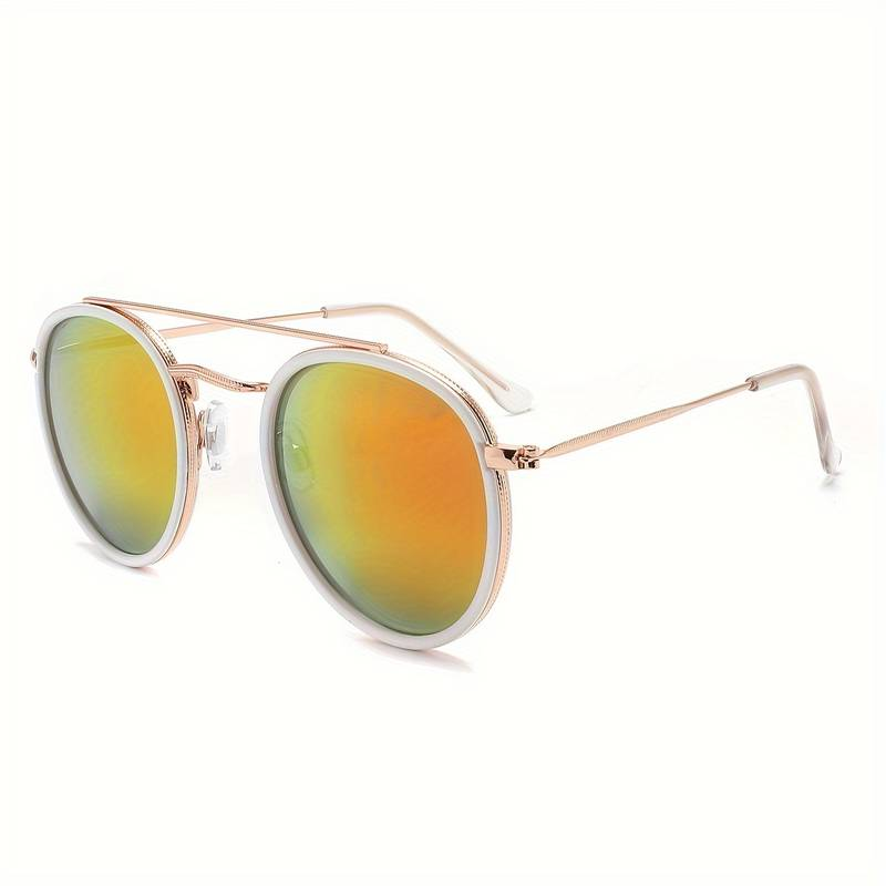 Solar Nova са слънчеви очила с модерен винтидж привкус, създадени за хора с нестандартен стил и излъчване. Кръглите огледални лещи с преливащ златисто-оранжев ефект напомнят на горещ летен изгрев, докато тънката златиста рамка придава елегантност и лекота. Двойният мост подсилва авангардния характер, а силиконовите подложки осигуряват комфорт дори при продължително носене.