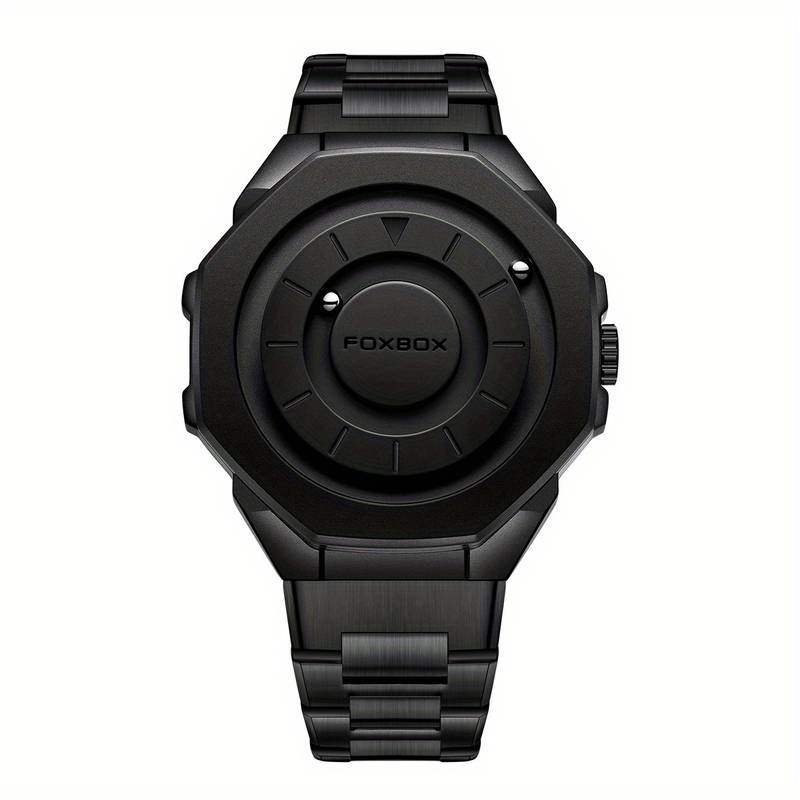 Корпусът и каишката са изработени от висококачествена неръждаема стомана с матово черно покритие, което придава изчистен и футуристичен вид. Часовникът е не просто аксесоар, а технологично изкуство, което предизвиква гравитацията и традицията.