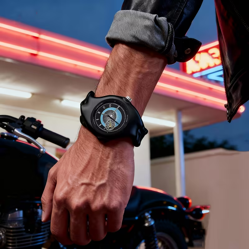 TimeStorm Vector впечатлява с футуристичен дизайн и нестандартен циферблат, който превръща часовника в истински визуален акцент. Контрастната комбинация от черно, синьо и бяло придава динамичен и технологичен характер, а ергономичният корпус и силиконовата каишка осигуряват комфорт при продължително носене. Моделът е създаден за хора, които обичат иновативния стил и искат аксесоар, който се отличава от класическите часовници, без да прави компромис с практичността.