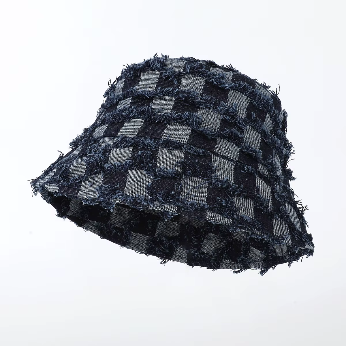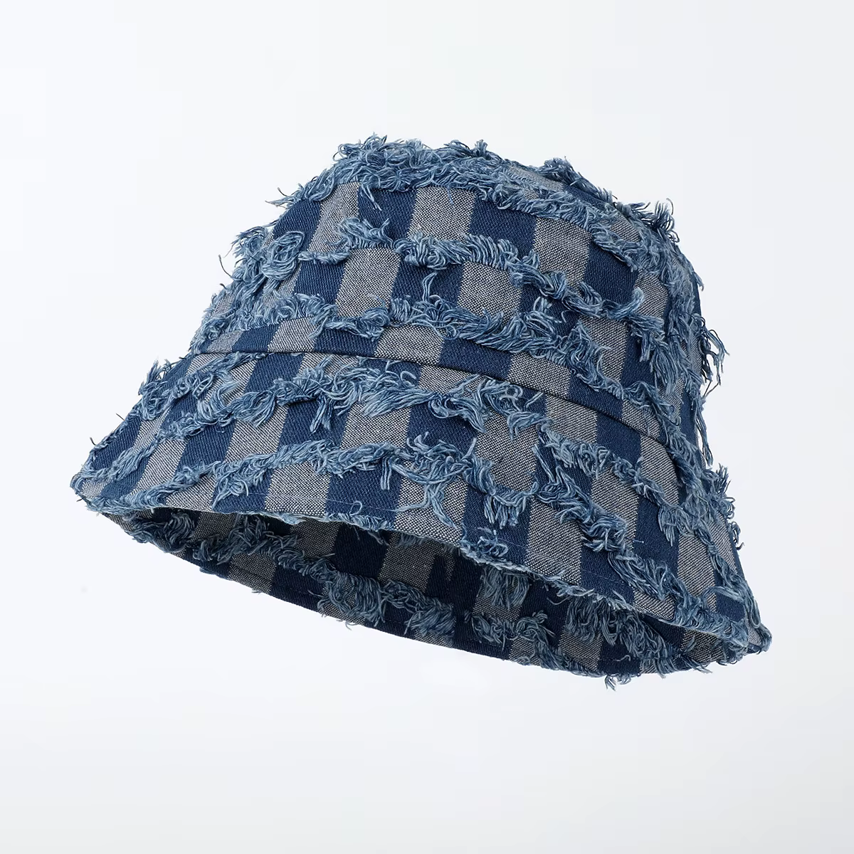 Denim Rebel е стилна и характерна шапка тип „рибарка“, създадена за хора с дързък дух и усет към нестандартната мода. Изработена от висококачествен деним в наситени нюанси на синьото, шапката се отличава със своята оригинална шахматна текстура и нарочно изтрити ръбове, които ѝ придават автентичен, винтидж вид. Неравномерните ресни по повърхността ѝ създават динамичен, „разрошен“ ефект, напомнящ за уличната култура и свободата на изразяване.